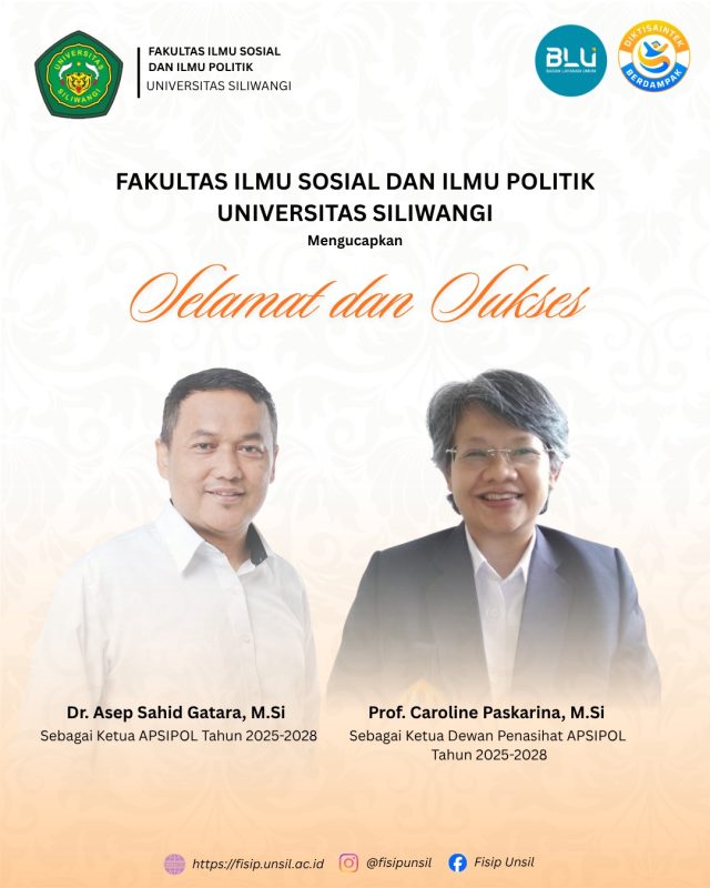 Fakultas Ilmu Sosial dan Ilmu Politik Universitas Siliwangi mengucapkan SELAMAT DAN SUKSES kepada Dr. Asep Sahid Gatara, M.Si (Sebagai Ketua APSIPOL Tahun 2025-2028) dan Prof. Caroline Paskarina, M.Si (Sebagai Ketua Penasihat APSIPOL Tahun 2025-2028)