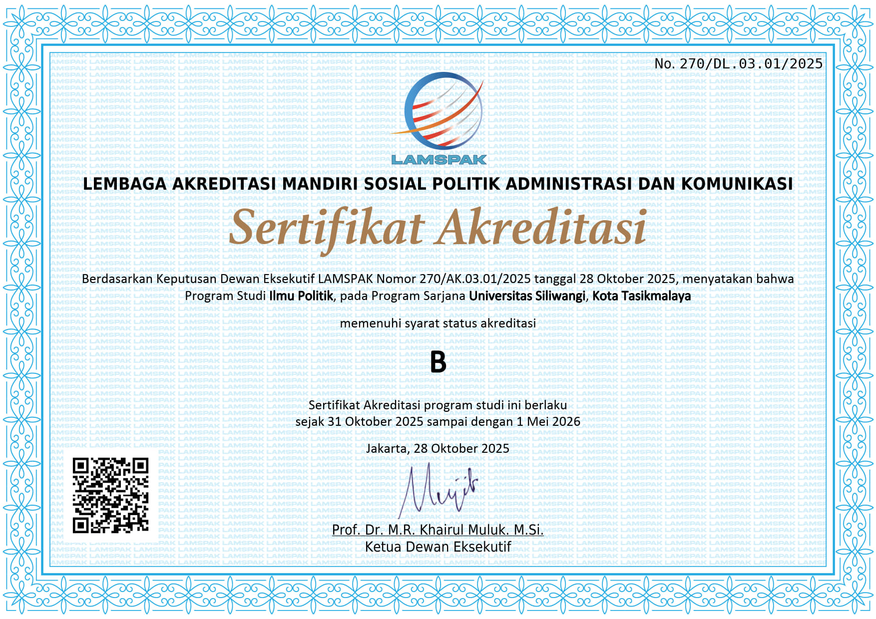 Akreditasi Program Studi Ilmu Sosial Fakultas Ilmu Sosial dan Ilmu Politik Universitas Siliwangi.