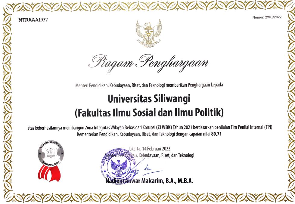 9. Apa manfaatnya FISIP Universitas Siliwangi (Unsil) dicanangkan menjadi zona integritas?