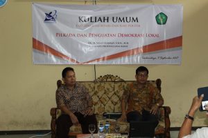 Fakultas Ilmu Sosial dan Ilmu Politik Universitas Siliwangi pada hari Senin, 11 September 2017 dengan tema : Pilkada dan Penguatan Demokrasi Lokal. Adapun pembicara dalam kuliah umum ini adalah Dr. H. Yayat Hidayat, M.Si (Ketua KPU Provinsi Jawa Barat). Kuliah umum ini bertujuan untuk memberikan pemahaman bagi mahasiswa FISIP UNSIL, khususnya mahasiswa baru tentang berbagai persoalan-persoalan yang terjadi di sekitar pelaksanaan pemilihan kepala daerah secara langsung dan penguatan demokrasi di tingkat lokal.