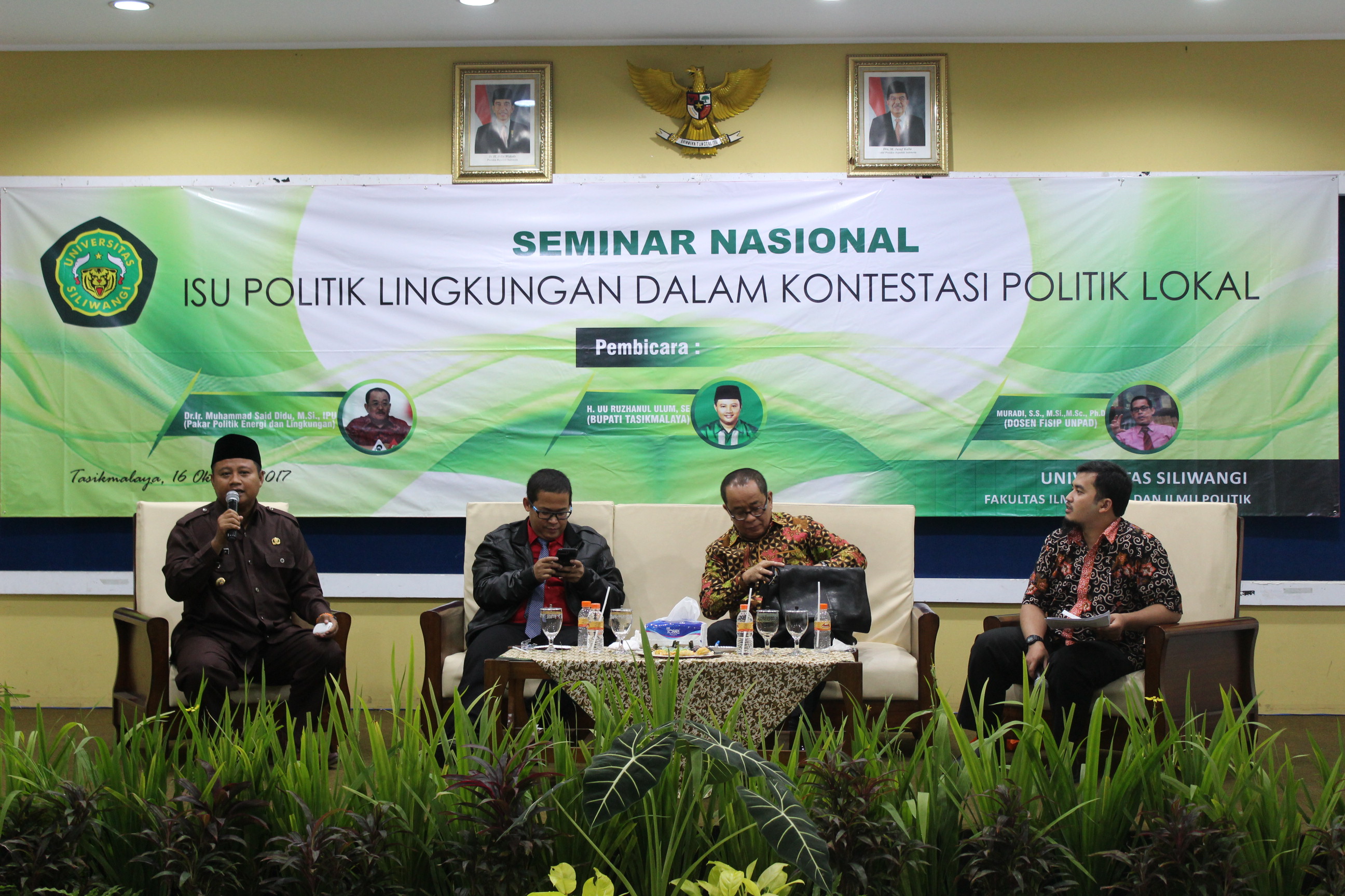 tas Ilmu Sosial dan Ilmu Politik Universitas Siliwangi pada Hari Senin, 16 Oktober 2017 melaksanakan seminar nasional dengan mengusung tema “Isu Politik Lingkungan dalam Kontestasi Politik Lokal. Tema yang berkaitan dengan isu lingkungan ini diangkat karena selama ini dalam kontestasi politik khususnya pada kontestasi politik di tingkat lokal masih belum banyak menyentuh isu lingkungan ini. Para Kontestan dalam kontestasi politik lokal itu lebih banyak menyoroti isu-isu yang berkaitan dengan pembangunan fisik dan kesejahteraan, padahal persoalan lingkungan sebenarnya merupakan persoalan yang krusial yang paling dekat dengan kehidupan masyarakat khususnya di tingkat lokal.