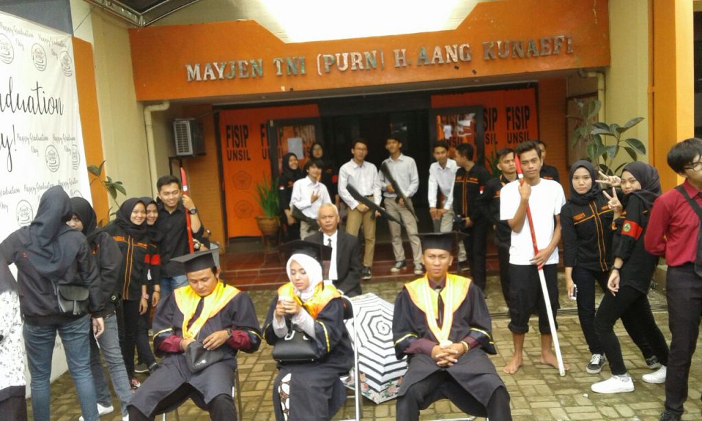 Di Fakultas Ilmu Sosial dan Ilmu Politik sendiri diadakan acara seremonial khas FISIP sebelum pengantaran Wisudawan ke gedung Mandala. Kegiatan ini diselenggarakan dengan maksud memberikan selamat kepada wisudawan/wisudawati dari FISIP. Seperti yang tertera pada keputusan rektor tentang Pelantikan Lulusan Program Diploma, Sarjana, dan Magister Universitas Siliwangi Periode I Tahun Akademik 2017/2018, wisudawan dari Fakultas Ilmu Sosial dan Ilmu Politik sebanyak 3 orang yaitu Jejen Zaenal Hilmi, Jamalludin Alafgani dan Bella Pertiwi Januarianti.